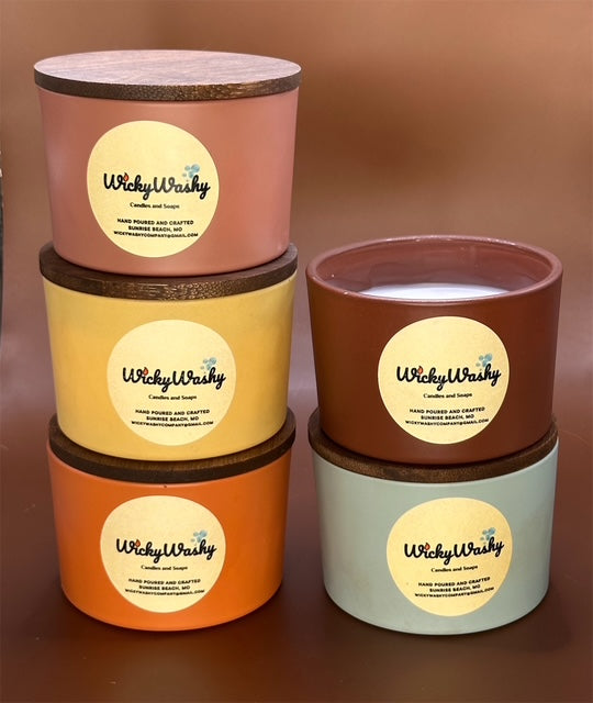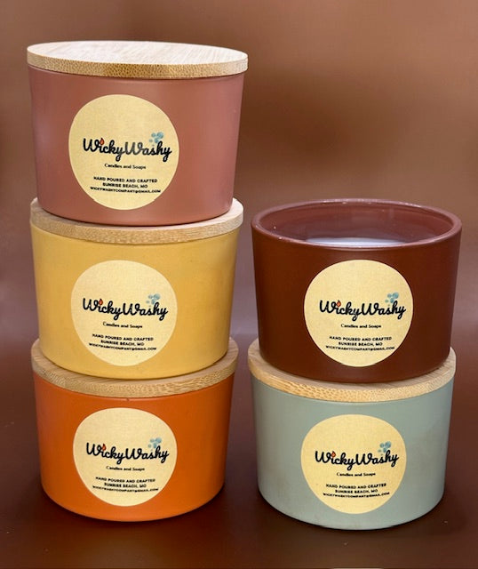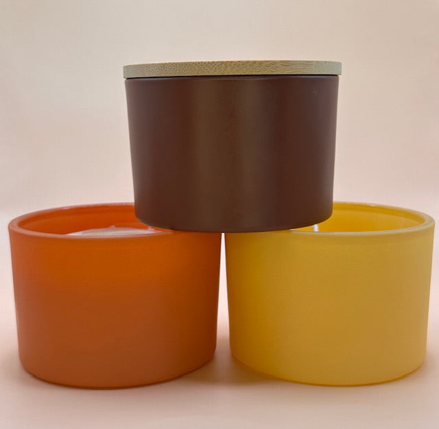 Experience subtle tranquility as you light this nature inspired 4 ounce opaque colored jar filled with our hand-poured luxuriously creamy coconut-soy blend wax. Topped with a richly finished walnut lid or natural pine. Available in your choice from our selection of curated fragrances available for this container. Coordinates well with our Brown Reactive Glaze Ceramic jar and Amber thick glass jar.